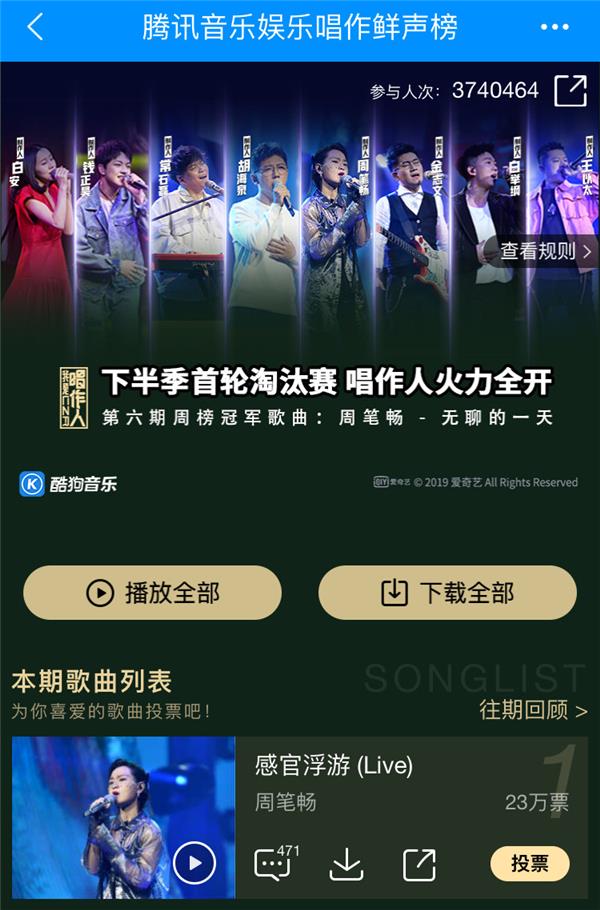 如此佳作,在酷狗上线后,迅速拿下23万票,荣登本期腾讯音乐娱乐唱作鲜声榜第一,也就毫不意外了。