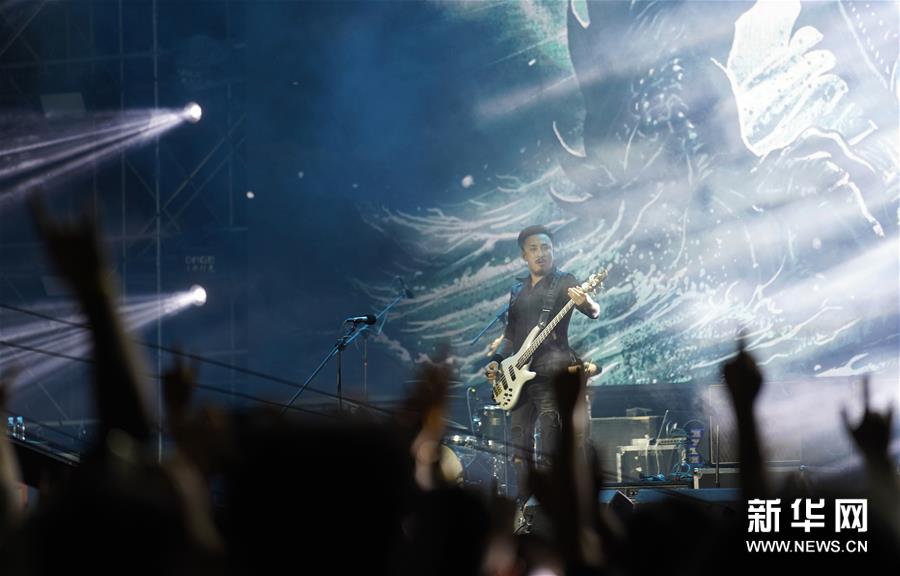 郁乐队成员在舞台上表演(8月24日摄)。新华社记者 金良快 摄