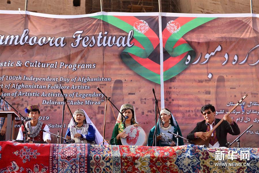 8月23日,在阿富汗中部巴米扬省首府巴米扬市,当地歌手在台上表演。新华社发(努尔·阿齐兹 摄)