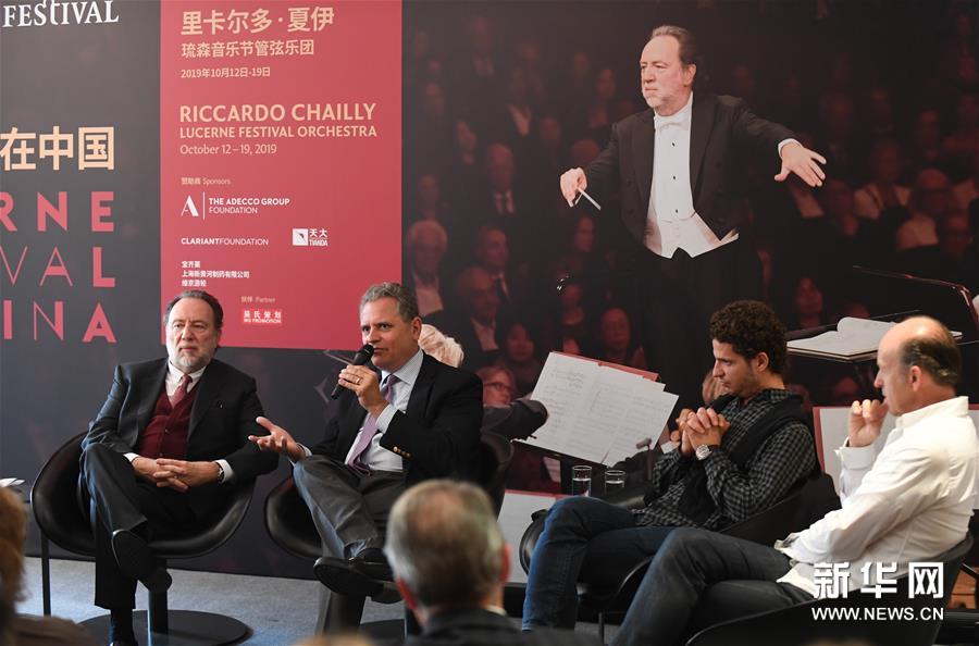 10月12日,琉森音乐节执行与艺术总监迈克尔·海弗里格(左二)介绍巡演亮点。当日,“琉森音乐节在中国”在北京举行新闻发布会。据介绍,琉森音乐节管弦乐团将于10月12日至19日先后登台国家大剧院、上海交响乐团音乐厅和深圳音乐厅,首次展开中国三地巡演。新华社记者 罗晓光 摄