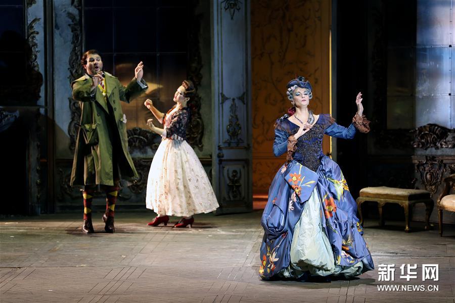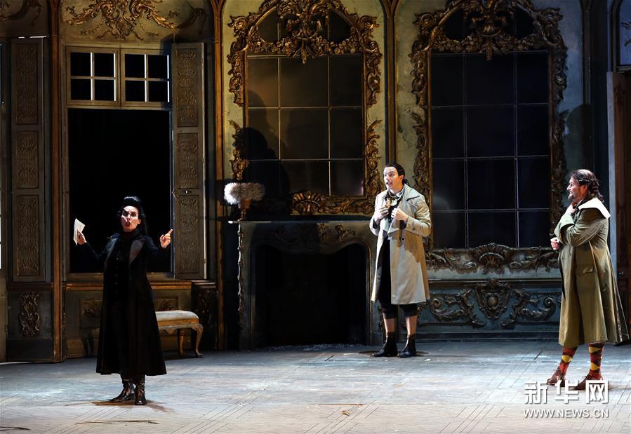 10月15日,意大利斯卡拉歌剧院演员在进行《假扮园丁的姑娘》的彩排。新华社记者 刘颖 摄
