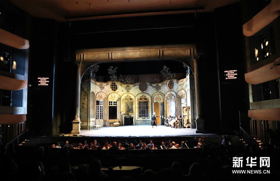 10月15日拍摄的意大利斯卡拉歌剧院歌剧《假扮园丁的姑娘》的彩排现场。新华社记者 刘颖 摄