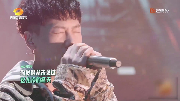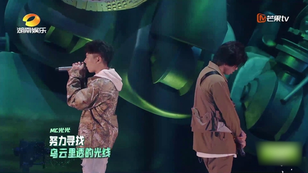 节目中,MC光光和法老在公演舞台上表演了一首以环保为主题公益说唱曲目《Hold my hand》,歌曲以第一人称视角为正在消失的自然景观、濒临灭绝的珍惜物种发声,向大家展现出物种灭绝、环境污染、气候变暖等目前存在的一些环境问题,歌词句句戳心引人深思。两人在副歌部分紧握双手高唱“Hold my hand”,以此呼吁大家一起爱护环境,保护环境,这一举动触动了在场所有人。随后MC光光也发表了创作初衷:“对于我们来说难得有在这样大的平台唱歌的机会,希望可以用说唱的形式把环境保护、热爱地球的想法传递给每一个人。”