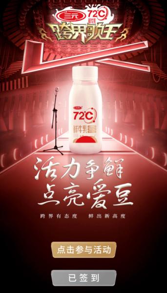 由三元72℃优选鲜牛乳冠名播出的音乐综艺节目《跨界歌王》第五季第四期,于上周六晚20:30在北京卫视播出。三元72℃优选鲜牛乳和跨界歌王联合推出的“活力争鲜,点亮爱豆”H5榜单第一期也于上周四出炉:陈建斌名列榜首,紧随其后的是于毅和小沈阳,竞争激烈。那么这一期他们的精彩表现又会引起榜单怎样的变化呢?一起来观看这场跨界盛宴,并点亮你心中的歌王吧!