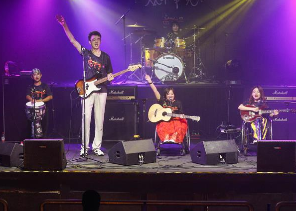 8月14日,8772乐队在演唱会上表演。 当日,由罕见病、残障人士组成的8772乐队在北京举办首张专辑《从不罕见》首唱会,近300名观众到场支持,并聆听了8772乐队的激情演唱。