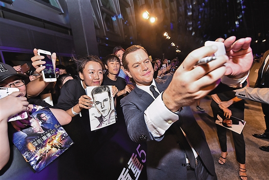 由马特·达蒙、艾丽西亚·维坎德等领衔的动作大片《谍影重重5》前晚在北京举办首映发布会。在红毯上,两位主演与粉丝亲密互动合影,马特·达蒙还激动地表示:“我来过很多次中国,中国就是我的第二故乡。”引得粉丝尖叫连连。这部好莱坞大片将于8月23日在内地上映。
