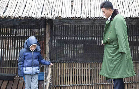 胡军戏内外“小情人”齐聚 康康冒雪探班老爸