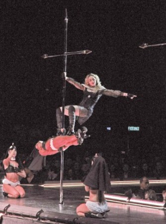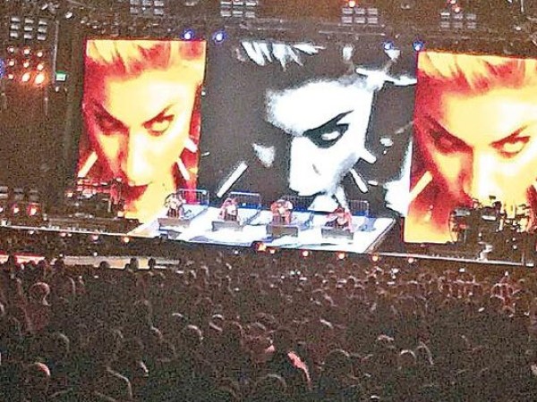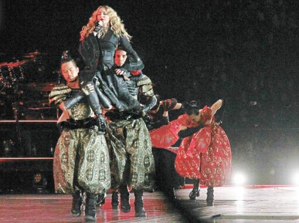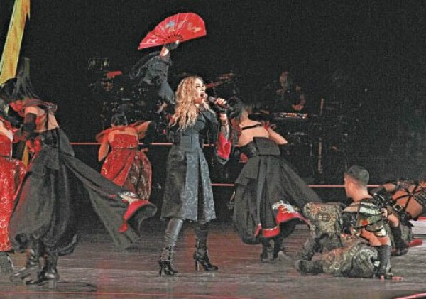 苦候多时,麦当娜终于10时15分开场,差5分钟就破了台湾首场迟到纪录,成亚洲站内最迟开演唱会的一场。麦当娜以极具东洋风格的红黑型爆武士造型从半空舞台献唱《Iconic》现身,立刻跟粉丝互动大喊:“香港!是不是跟我一齐!”全场都喊破喉咙十分兴奋。麦当娜看见粉丝消了口气,立刻不停地说:“多谢香港!”其后接连唱三首歌曲,愈跳愈放以及骑着性感“修女”打扮的舞蹈员身上,还跳上十字架跳舞,气也不喘下唱出第五首歌曲《Devil Pray》,尽显天后风范,期间一直讲粗口,以及用广东话说:“你好!”