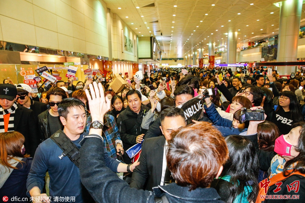 独家:CNBlue抵台人气火爆 粉丝拥挤摔倒不忘递礼物(高清)