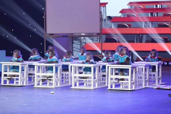 节目中最有亮点的当属开场“猕猴课堂”,12只来自国内首个猿猴学校——“中国猿军团”的雪猴为大家送上了一场俏皮可爱的表演。学校的老师们都是来自全国各地热爱动物、接受过专业学习的“爱猴人士”,他们亲切地称猴子为学生。据老师们的介绍,在与“学生们”日常的相处中逐渐了解彼此的秉性,并根据每个猴子的性格特点量身定制了属于每只猴子的节目,对于他们来说,所有“学生”和老师在一起就是一个大家庭,不仅师生感情良好,猴子们彼此也非常“恩爱”,它们会像人类一样有自己的情绪,甚至还会恋爱、吵架、分手、吃醋等行为,十分惹人喜爱。热爱小动物出了名的“家幽”女神朱丹再次把持不住上台与猴子们亲密互动,节目最后主持人高博带领所有团队成员再次向大家送上猴年祝福,由猴子亲自送上的猴年祝福着实给观众带来了不小的惊喜。