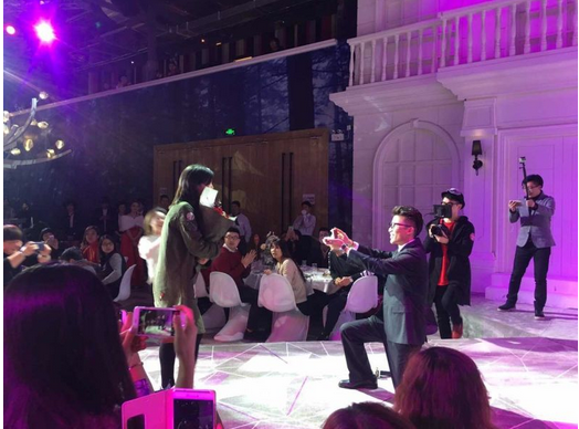 说到2016最有新意、最浪漫,最有趣的求婚圣地,《消失的新郎》百老汇移动剧院一定是你最佳的选择。在这里不仅有专业主厨烹调的丰盛格调晚餐,舞美音效又为你量身打造了最具情调的美好氛围,再遇上明星亲临,会与所有观众一同见证那个最美妙的时刻!在今年的“2月14日情人节专场演出”中,就有人“现场求婚”了!在华丽的舞美布景及灯光环绕下,在所有观众与高颜值演员们的共同烘托下,上海卫视美女主持陈辰也现场送出独家祝福。他们无疑成了众多情侣当中最让人羡慕的一对!