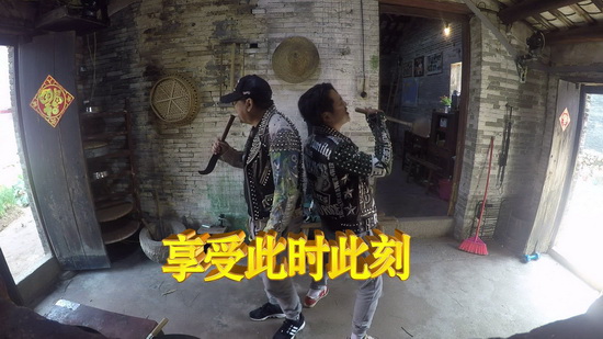 回到乡下故居的曹格父子一直过着简朴闲适的生活,每日散步打拳,品茶听曲儿,虽身处陋室,却仍不忘强身健体,陶冶情操。在所有观众都以为这便是曹氏日常之时,向来善于苦中作乐的大龄“顽童”曹格却出其不意,拿出自己表演时耀眼华丽的舞台装,朋克味十足的铆钉机车夹克,给自己和曹爸爸换上,在厨房灶台边大玩摇滚乐,瞬间点燃了乡间氛围,嗨翻了青砖瓦房。