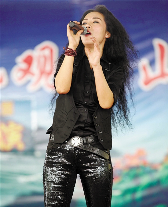 “我们在这儿欢笑/我们在这儿哭泣/我们在这儿活着/也在这儿死去……”一把高亢嘹亮的女声响彻观音山,广东摇滚女歌手王星一身黑衣黑裤酷炫登场,为观众带来一首《北京北京》,率先拉开2016年度首场观音山百场公益惠民演出的序幕。