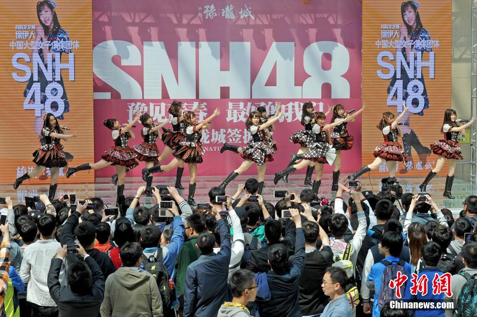 SNH48部分成员在表演。 中新社记者 孙昊声 摄