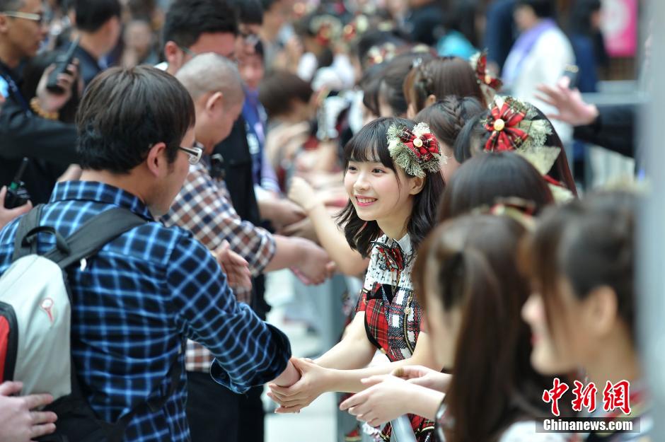 SNH48成员与粉丝互动。 中新社记者 孙昊声 摄