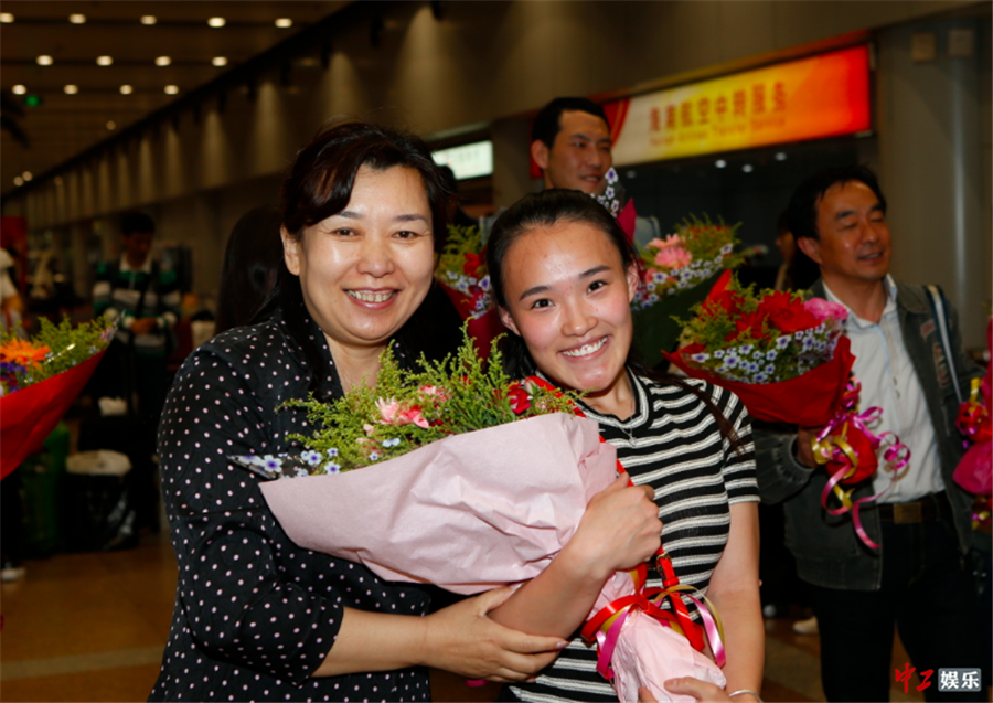 中国杂技团总经理张红为凯旋演员奉鲜花