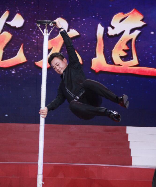 臂力惊人!52岁朱军大跳钢管舞 双脚离地高高“飞起”