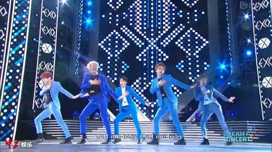 中工娱乐6月6日讯 6月4日晚,2016《韩国梦想演唱会》盛大开幕,芒果TV全平台直播,同时在线人数破370万。超人气组合EXO九人合体,以一首节奏强劲的《CALL ME BABY》引发粉丝集体刷屏。