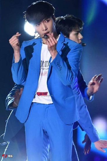 据悉,这是EXO第四次参加《韩国梦想演唱会》,当晚EXO成员集体身着蓝色西装,用炫酷的舞步演绎组合经典热曲《CALL ME BABY》,在演唱结束后,张艺兴还对镜头及现场的粉丝比出了“爱心指”,引来满屏弹幕应援,在线人数升至370万。