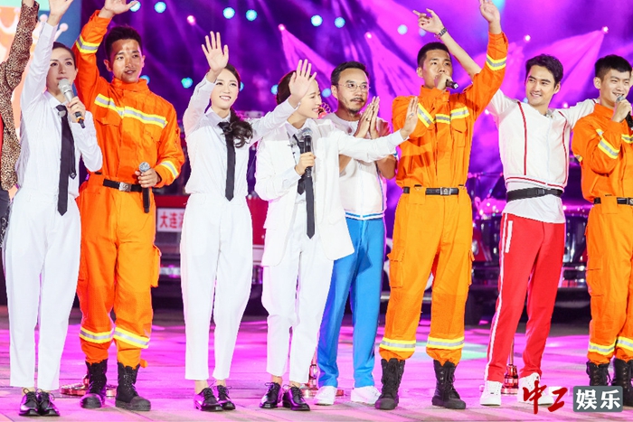 《我们来了》众星与消防员联欢 谢娜唱《逆战》与莫文蔚斗歌