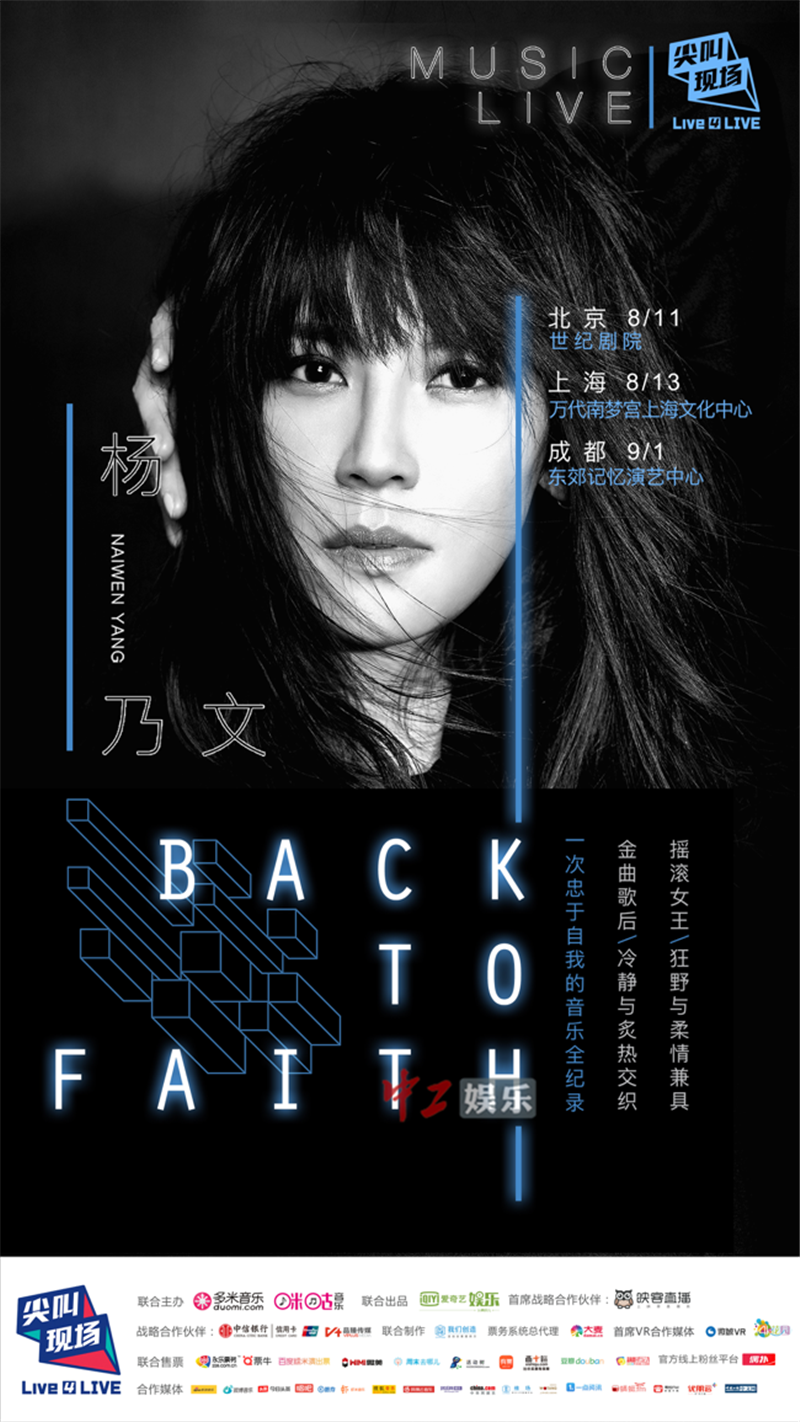中工娱乐2017年7月7日报道 被媒体和歌迷誉为“摇滚女王”的杨乃文继发行新专辑《离心力》后,在歌迷的期盼中,“BACK TO FAITH”MUSIC LIVE尖叫现场演唱会也终于正式开启!曾在6月18日live 4 LIVE尖叫现场品牌发布会上宣布演唱会计划的她,将从8月11日开始在北京、上海、成都连开三场“BACK TO FAITH”MUSIC LIVE尖叫现场演唱会,为歌迷呈现出不同以往的摇滚风暴!