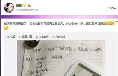 谢楠晒下厨照 笔迹娟秀网友惊呼吴京好福气