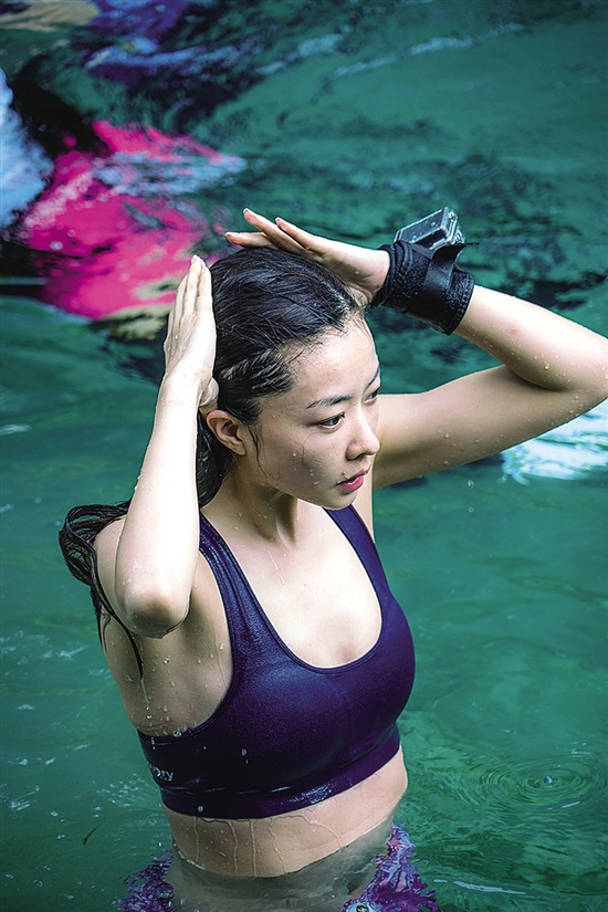 蓝洞是玛坦塔斯丛林孕育的“蓝宝石”,因石灰岩地带的岩洞积水而形成,湖水清澈见底,水面呈蓝色。“丛林家族”徒步穿越丛林抵达蓝洞,只为一件事——摆pose跳水。吴奇隆率先采用助跑转体140度空翻跳水,奥运冠军邢傲伟上演“鲤鱼跃龙门”,孙艺洲搞怪使出“佛山无影跳”,曾经参加过明星跳水节目的黄子韬展示360度空翻入水动作。女将们也不甘示弱,熊黛林身着运动背心秀出好身材,小花童菲则大展潜水技术,造型宛若美人鱼。