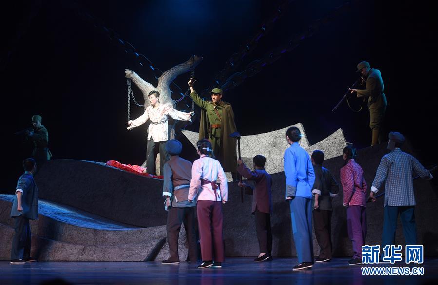 10月11日,演员在沪剧《回望》中表演。当日,由上海戏曲艺术中心主办的“东方之韵——上海戏曲艺术中心新剧目北京展演”拉开帷幕,上海沪剧院的大型沪剧《回望》作为首个展演剧目在北京长安大戏院上演。《回望》改编自王愿坚的小说《党费》,讲述红军长征后,江西苏区女共产党员黄英忍受着失去丈夫的痛苦,在艰苦条件下坚持斗争的感人故事。新华社记者金良快摄