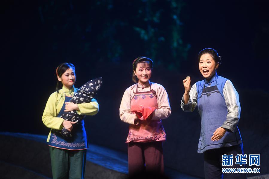 10月11日,演员在沪剧《回望》中表演。当日,由上海戏曲艺术中心主办的“东方之韵——上海戏曲艺术中心新剧目北京展演”拉开帷幕,上海沪剧院的大型沪剧《回望》作为首个展演剧目在北京长安大戏院上演。《回望》改编自王愿坚的小说《党费》,讲述红军长征后,江西苏区女共产党员黄英忍受着失去丈夫的痛苦,在艰苦条件下坚持斗争的感人故事。新华社记者金良快摄