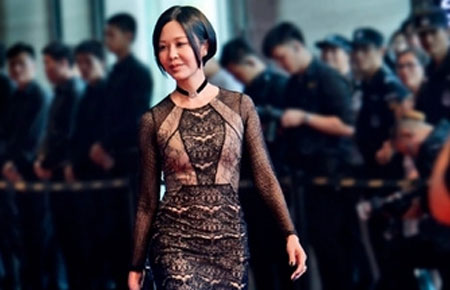 香港影星孙佳君出席时尚COSMO时尚成就梦想颁奖典礼,一袭黑色蕾丝透视装性感亮相,好身材和不老容颜让人印象深刻。