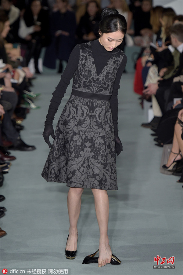 尴尬!中国名模李静雯纽约时装周T台一脚踏空(图)
