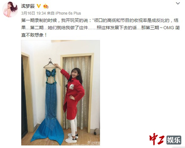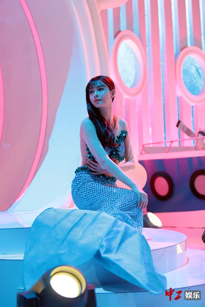 中工娱乐4月26日讯 还记得沈梦辰之前曾在微博上晒出的那身blingbling的“美人鱼”装吗?湖南卫视本周日22:00即将播出的《透鲜滴星期天》第二期一开场,沈梦辰就化身美美的“人鱼公主”,与透鲜小分队的型男们上演了一幕迷你情景剧。