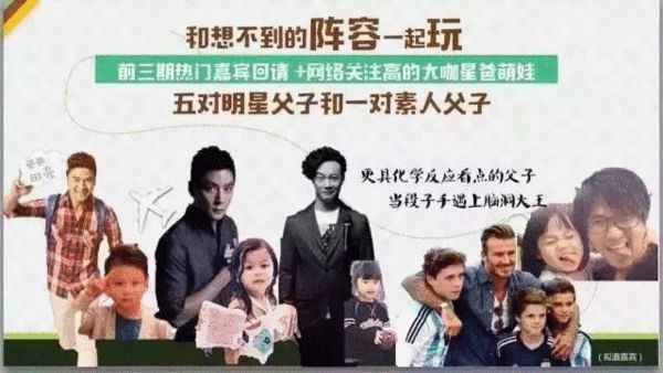 此外,还PPT上还透露了嘉宾阵容。PPT显示,节目将回请前三期热门嘉宾,并搭配网络关注度高的星爸萌娃,共组成五对明星父子以及一对素人父子。从PPT上可以看到,五对明星父子包括田亮森碗父子、吴彦祖父女、陈奕迅父女、小贝与三个儿子、韩寒父女,阵容强大。有媒体联系到了艺人方面,对方表示并没有听说到相关的邀请。