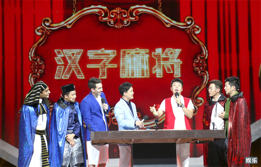 中工娱乐9月10日报道 湖南卫视“汉语桥”播出的第一期节目中,神坑虐考题有了,汉字笔顺比赛有了,这回又出了“汉字麻将”这个新花样。“汉字麻将”是导演组自主创新跟研发的新环节,一种将中国“国粹”麻将跟汉字组词相结合的“新型麻将”。游戏规则很简单,玩家只要将手中的散牌在“摸”和“吃”的过程中组成7对正确的词语就可以胡牌。为了让“汉字麻将”更加刺激好玩,导演组在前期设计的时候还加入了“功能牌”,“休战”牌可以指定对手此轮不能摸牌和吃牌,“白板”牌则可以代替任何字跟任意牌组词。