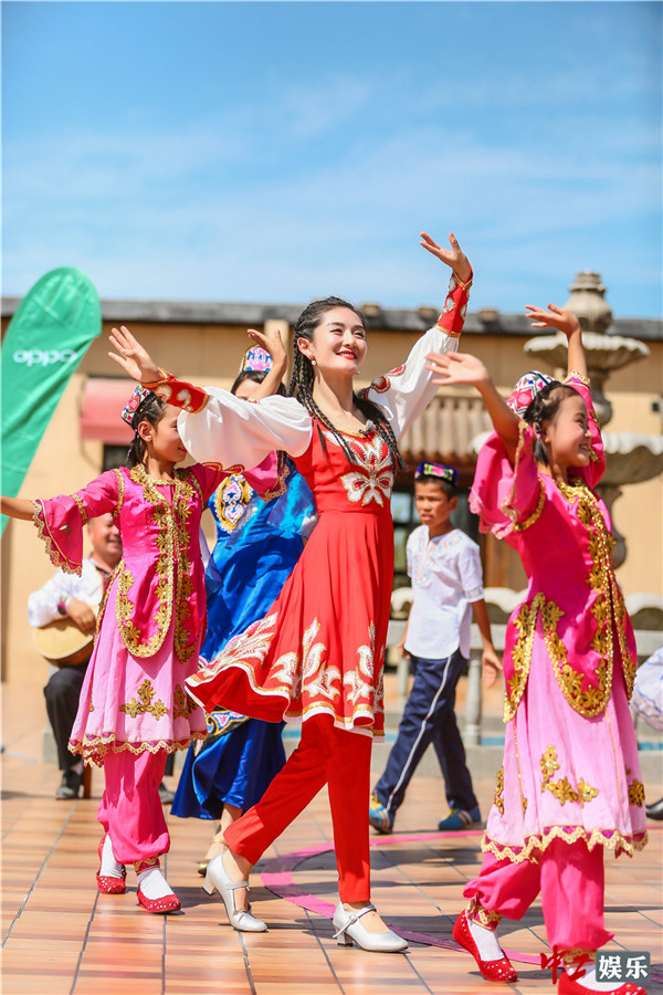 众所周知,葡萄早已是新疆的代名词之一。《我们来了》此次来到新疆鄯善,自然也少不了和葡萄有关的体验。众星们每队配有一个超大型压榨盆,盆里满是新鲜多汁的新疆特色葡萄,明星们需要脱下鞋子进入盆内,伴随着音乐,一遍舞蹈一遍用脚压汁。大家在品尝过新疆特色的30多种新鲜多汁的葡萄后,被可爱的新疆小姑娘带到压榨葡萄汁的场地。此时来自新疆歌舞团的演奏家和舞蹈演员们已经唱跳起来了,众星换好鞋袜后立马进入葡萄盆内,与现场帅气美丽的舞蹈演员互动了起来。此时谢娜早已抑制不住体内的“洪荒之力”了,径直跟身边的新疆帅小伙轧起舞来。这舞姿和状态完全不输在场的专业舞蹈演员,互动着跳完一场,谢娜还连挑了几下眉,这新疆舞的精髓已经被谢娜掌握了。正因如此,谢娜也底气十足地在现场大声说:“我可是亚洲女舞王!”说完,谢娜自己也忍不住哈哈大笑了起来。
