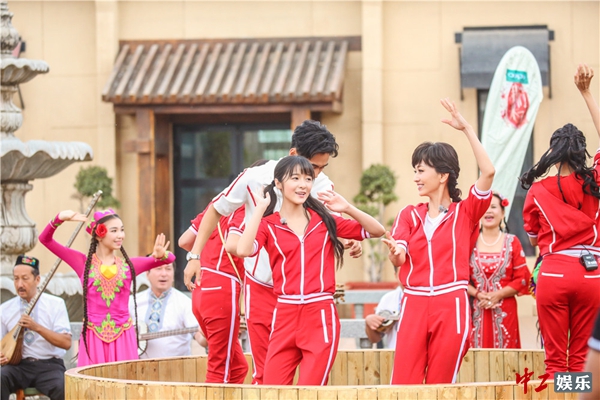 十位嘉宾在偶像之家共进午餐时,节目组安排了《我们来了》传统游戏项目——演技大比拼。汪涵和谢娜作为两季元老,给众嘉宾介绍称:在第一季节目中喝的是加了芥末的牛奶,而这次节目组准备的是富有新疆本地特色的葡萄汁。十杯颜色一样的葡萄汁分给两组,每组里有一杯味道异于其他四杯的怪味果汁,通过观察看谁喝到的怪味果汁。本轮比拼谢娜声情并茂,先是在鼻前寻味了一番,面露难色。随后,欲做喝状,无奈又因杯中“怪味”引起一阵反胃。一手举杯,一手扶住胸口,45度仰望天空长吁一口气,悲壮的作势要咽下这杯“毒酒”。不料只是浅尝则止,抿了抿嘴唇。哪知画风突变。只见谢娜瞳孔放大,眨巴眨巴眼睛,示意大家:“诶哟,不错哦”。整场演下来,全场观众早已笑的人仰马翻。