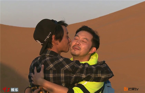 来到荒凉的沙漠,气候恶劣,条件艰苦,沙溢与黄致列依靠兄弟情,互助合作,得以坚持下去。而在即将胜利穿越沙漠时,沙溢与黄致列又来了一次“亲密接触”,面对围观者“亲一个”的呼声,黄致列抱住沙溢献上了人生第一次,现场“拥吻”沙溢,画面太美,简直辣眼睛。作为老司机,沙溢似乎很享受,“哥感到很幸福!”黄致列则跌坐在地,心中五味杂陈,“我第一次(亲)男孩!”
