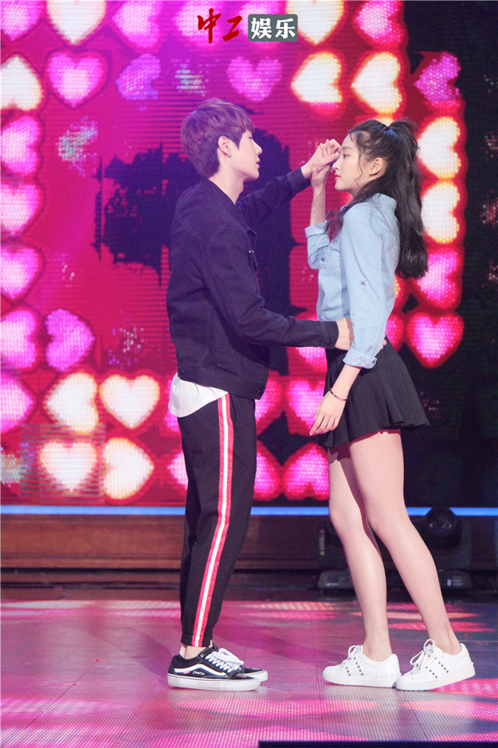 除了演讲,关晓彤与同龄人王一博的一段舞蹈秀也掀起了一阵高潮。节目中,关晓彤一身蓝衬衣与A字短裙的搭配青春活力十足,一双大长腿霸屏电视。在与同为1997年出生,同为大长腿的“天天兄弟”才艺担当——王一博搭档舞蹈时,画面十分养眼。汪涵、钱枫、大张伟在一旁打趣二人:“可以谈谈了”,热衷“做媒”的大张伟在听到关晓彤说想去旅行的时候还将王一博推到关晓彤身边,让两个年轻人都害羞不已。