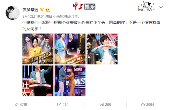 当然,一贯以“美男子”自居的常远也不放过任何一个自夸的机会。当说到自己小时候写“李小璐最漂亮”的纸条被妈妈发现问李小璐是谁的囧事时,也不忘说到这事很正常,贾乃亮也经常拿着小纸条问李小璐常远是谁。虽然之后被李小璐调侃为备胎,生活中比荧幕上塑造的角色还嗲,但经常在微博上互动的二人还是用实际行动证明彼此之间友情的稳固。