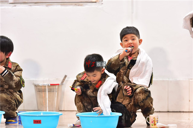 安吉小鱼儿军训照萌帅可爱 安吉“护弟”霸气全开