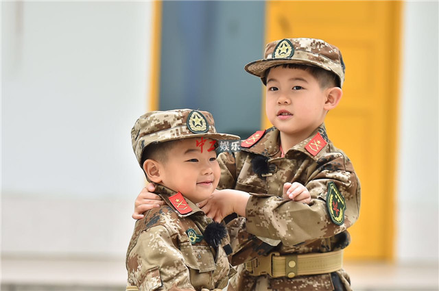 安吉小鱼儿军训照萌帅可爱 安吉“护弟”霸气全开