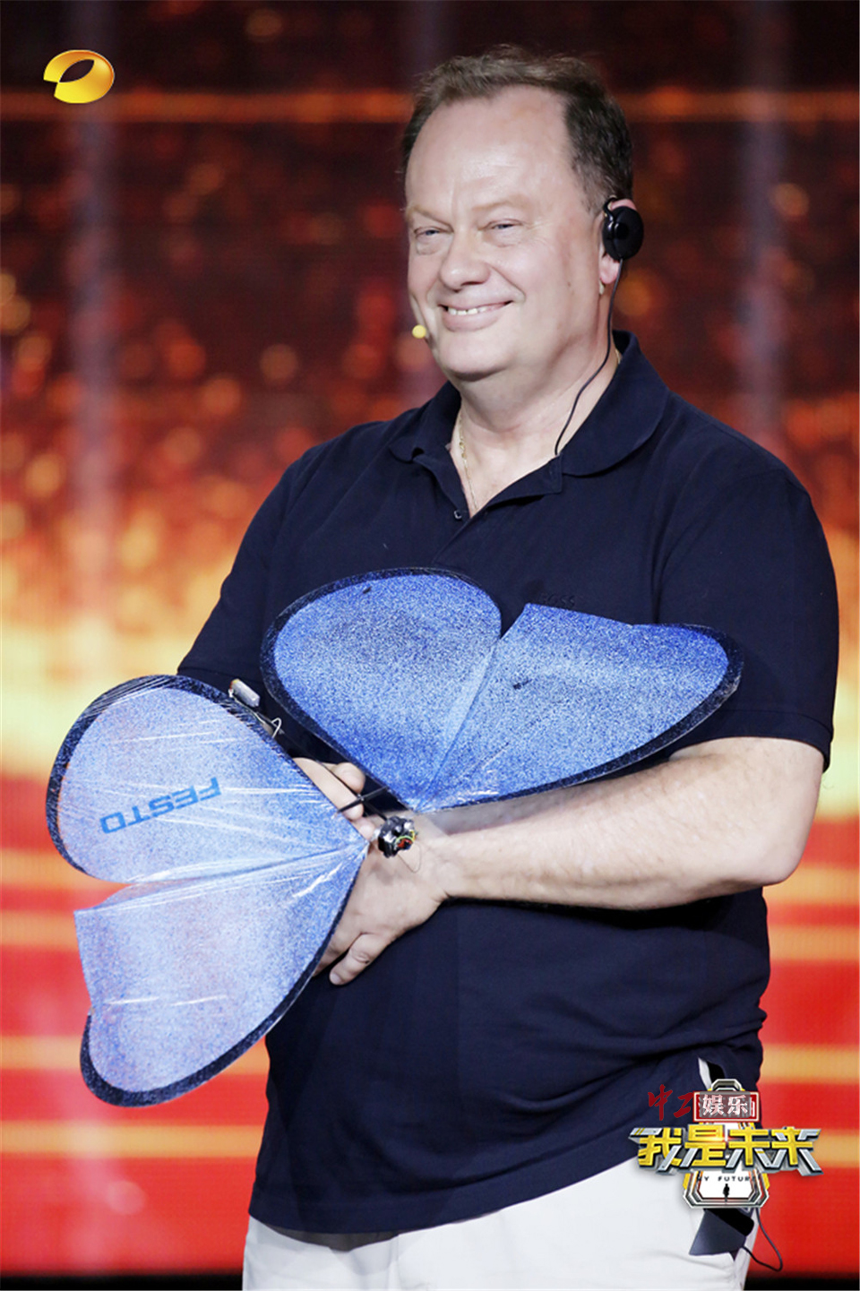 湖南卫视《我是未来》是由湖南卫视、唯众传媒联合出品,中国科学院科学传播局特别支持的国内首档原创顶尖科技秀。本周日《我是未来》将迎来第二场“中外对战”,对战双方分别是来自中国的三一集团总工程师易小刚和来自德国的费斯托大中华区总经理陶澎。作为对战嘉宾之一,陶澎可谓“来势汹汹”,带来的几款仿生科技产品都令人大开眼界。不管是振翅翱翔在演播室内上空的大鸟,还是扇动着美艳翅膀翩翩起舞的蝴蝶,逼真程度都让人叹为观止。尤其是那只蓝色蝴蝶,抖动着翅膀,灵活地围绕在主持人和体验官身边飞舞,场景似幻似真,使观众朋友们仿佛置身在“香妃再世”现场。之前德国总理默克尔就向俄罗斯总统普京“推销”过费斯托的仿生蜻蜓,向印度总理莫迪“推销”过仿生昆虫,国家总理亲自“代言”,他们的仿生技术影响力之大可见一斑。