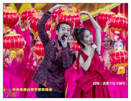 人民网北京2月16日电 (记者蒋波) 2018年央视春晚在除夕夜隆重登场,流光溢彩、令人惊艳的舞美,群英荟萃、流派纷呈的节目让人眼前一亮!本次春晚新气象、新风貌扑面而来,诠释了“喜气洋洋、欢乐吉祥”的节目主题。深受观众喜爱的青年演员也纷纷登场亮相,一展歌喉。陈晓与佟丽娅、沙溢夫妇等人联袂献上了轻快活泼春晚开场歌曲《万紫千红中国年》,传递了美好的新春祝福。