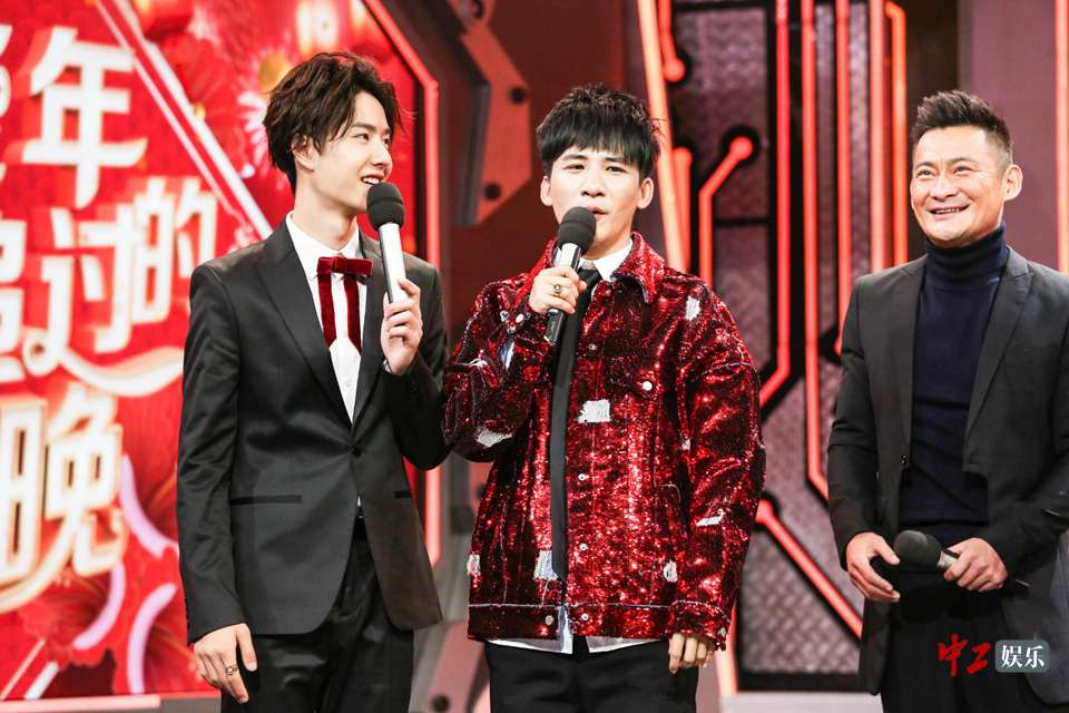 本期节目,王一博身着笔挺黑色西装搭配酒红丝绒领结,脚踩油光锃亮小皮鞋,帅气挺拔清俊矜贵,稳重正式又藏着俏皮细节,酒红领结恰好与喜气洋洋过年气氛配合得相得益彰。节目组也特意将天天向上现场装点成春晚现场,大圆桌子配上大红布,同时不忘加盆水仙花儿,全场弥漫着热热闹闹的欢乐气息。节目开场,王一博与其他天天兄弟们模仿春晚开场主持,恢弘大气的开场词霸气十足,王一博主持得有模有样,说起开场词时字正腔圆口条顺溜,仿佛让人置身春晚直播现场。