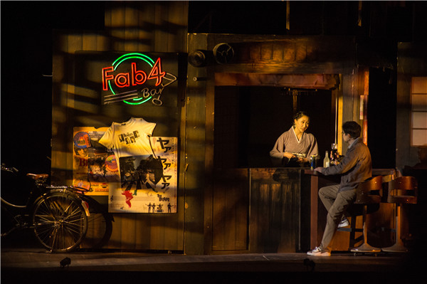 话剧最大的魅力所在就是它的现场性,互动性也非常重要。话剧《解忧杂货店》有一个全程的非常有“和风”味道的现场配乐,会全程的出现在整个剧中,演员的很多场景会进入剧场空间,会进入观众席的空间进行表演,会让观众更走进这个故事。如果你看过小说,看过两个电影的版本,你一定能在中文版的话剧里面获得一种全新的体验。
