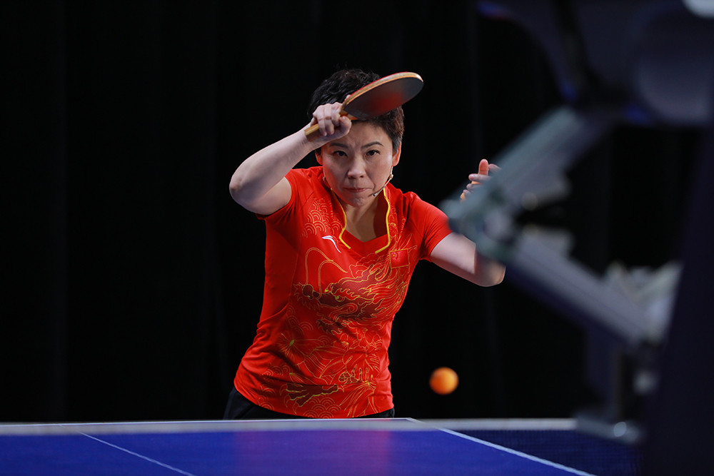 邓亚萍对战乒乓球机器人风采依旧