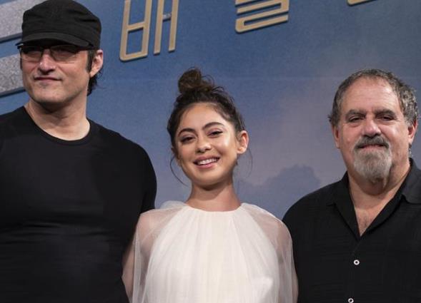 1月24日,在韩国首尔,导演罗伯特·罗德里格斯、演员罗莎·萨拉查和制片人约恩·兰多(从左至右)出席影片《阿丽塔:战斗天使》的发布会。