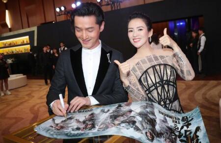 章子怡在微博上传胡歌为《攀登者》海报签名的图片,她在胡歌身边也变身迷妹,表情十分的丰富俏皮。