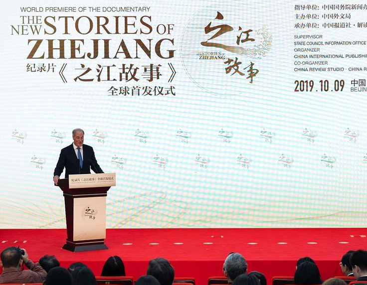 由国务院新闻办公室监制、中国外文局中国报道社解读中国工作室制作的纪录片《之江故事》在北京举行全球首发仪式。纪录片《之江故事》记录了英国上议院议员麦克·贝茨和夫人李雪琳,用一个月的时间从杭州至温州徒步旅行的精彩故事,以丰富生动的徒步影像和诙谐有趣的语言,传递出生机勃勃、活力洋溢的新时代中国形象。