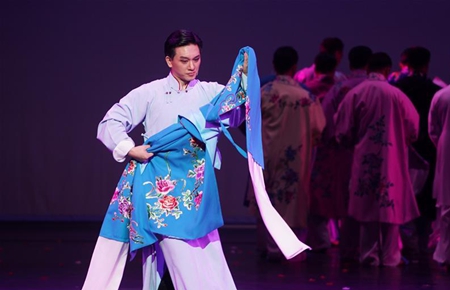 当晚,新编现代京剧《梅兰芳·蓄须记》在江苏南京上演。该剧生动呈现了梅兰芳先生真挚的爱国情怀和精湛的艺术修养。10月22日,演员在京剧《梅兰芳·蓄须记》中表演。